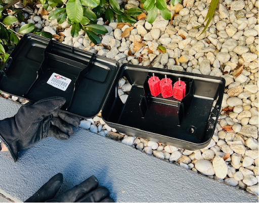 The placement of locked and replenishable rodent bait stations is the safest and most effective method of rodent control. The stations are childproof and pest safe and can only be opened using a purpose key.